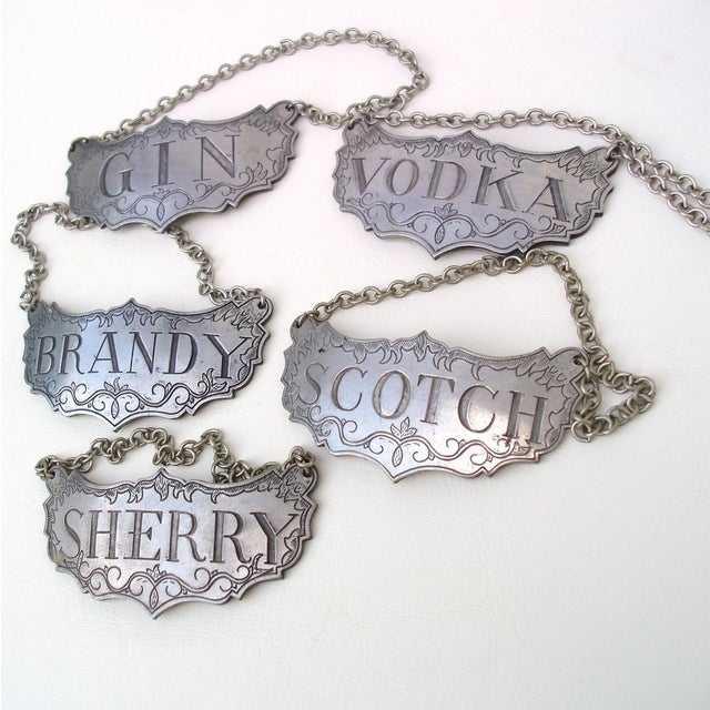 Decanter Tags products for sale - eBay European Liquor Decanter Tags Labels Set of 8 Copper With Adjustable Chain US. $16.99. Free shipping. 8Pcs Liquor Decanter Tags Labels Silver Copper Adjustable Chain Mettalic Brandy. $11.35. Was: $12.61. ... VINTAGE PEWTER WITH CHAIN "GIN" DECANTER BOTTLE TAG LABEL 3" X 1.5" ...