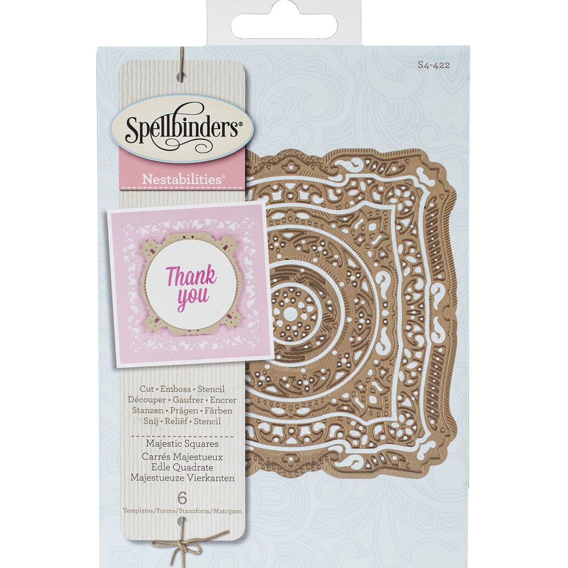 Spellbinders Nestabilities - charmedcardsandcrafts.co.uk Reach the pinnacle of sophistication and elegance with Spellbinders® Majestic Elements dies. These intricately detailed nesting die templates are perfect as single elements or can be combined and layered for endless creativity. Approximate Die Templates Sizes: 1: ¾" (Inset) 2: 13/8" 3: 21/8" (Inset) 4: 3" 5: 37/8" (Inset) 6: 41/8" (Border)