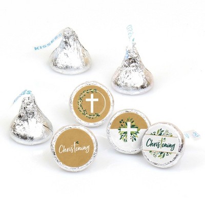 Big Dot of Happiness Christening Elegant Cross - Religious Party Round Candy Sticker Favors - Labels Fit Hershey's Kisses (1 sheet of 108)